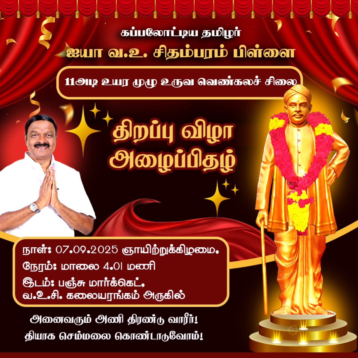 I inaugurated the 11-foot statue of national leader Mr. V.O.C., who sacrificed himself for freedom and Swadeshi as his two eyes, in Rajapalayam.